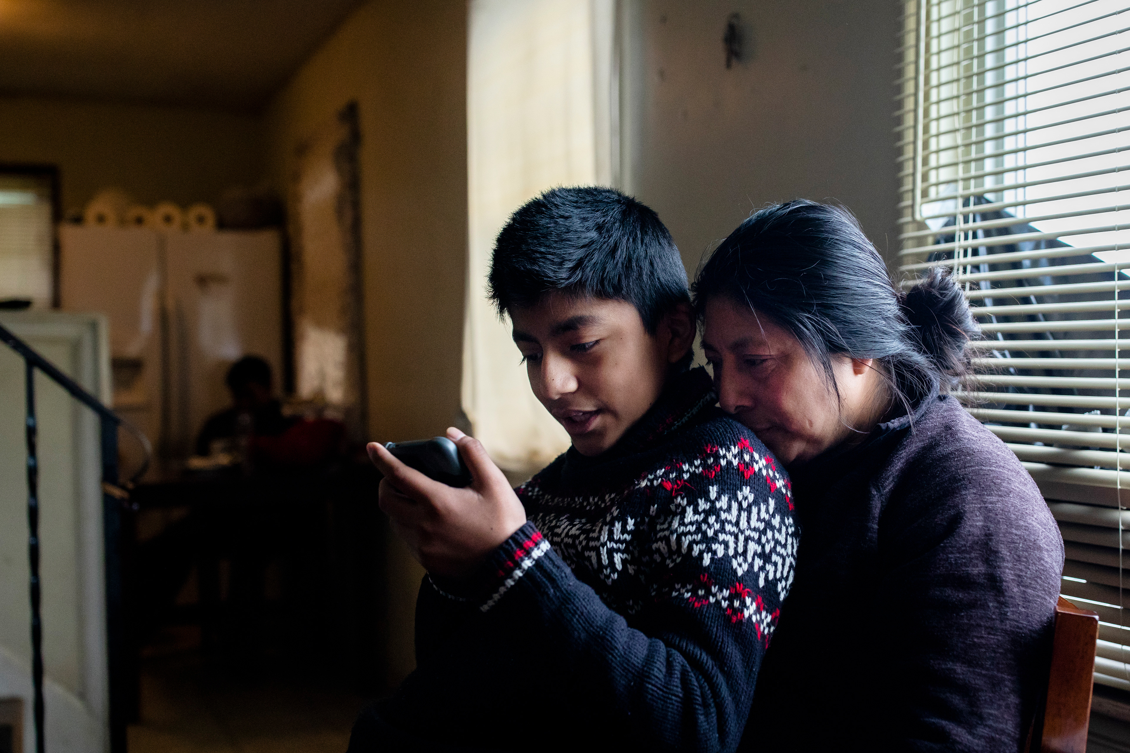 Julia Morales listens as her son, Huliser, reads from a picture of a handwritten Mother's Day note from her daughter on Sunday, May 10, 2020 at their home in Columbus, Ohio. Julia, an undocumented immigrant from Guatemala, left behind her daughter, Monika, after coming to the United States where Huliser was born. Though she fluently speaks Spanish and her indigenous language, Mam, Julia can not read or write, so her son read the note aloud to her.